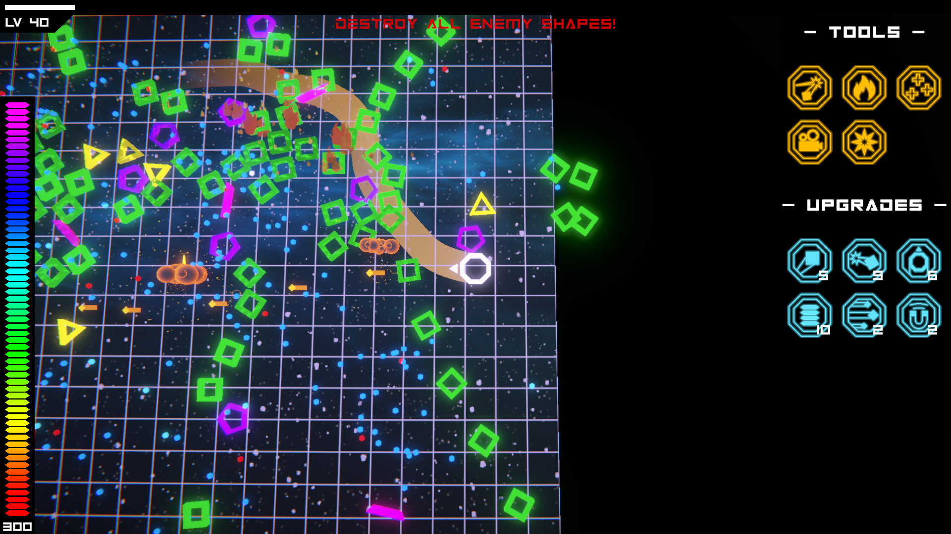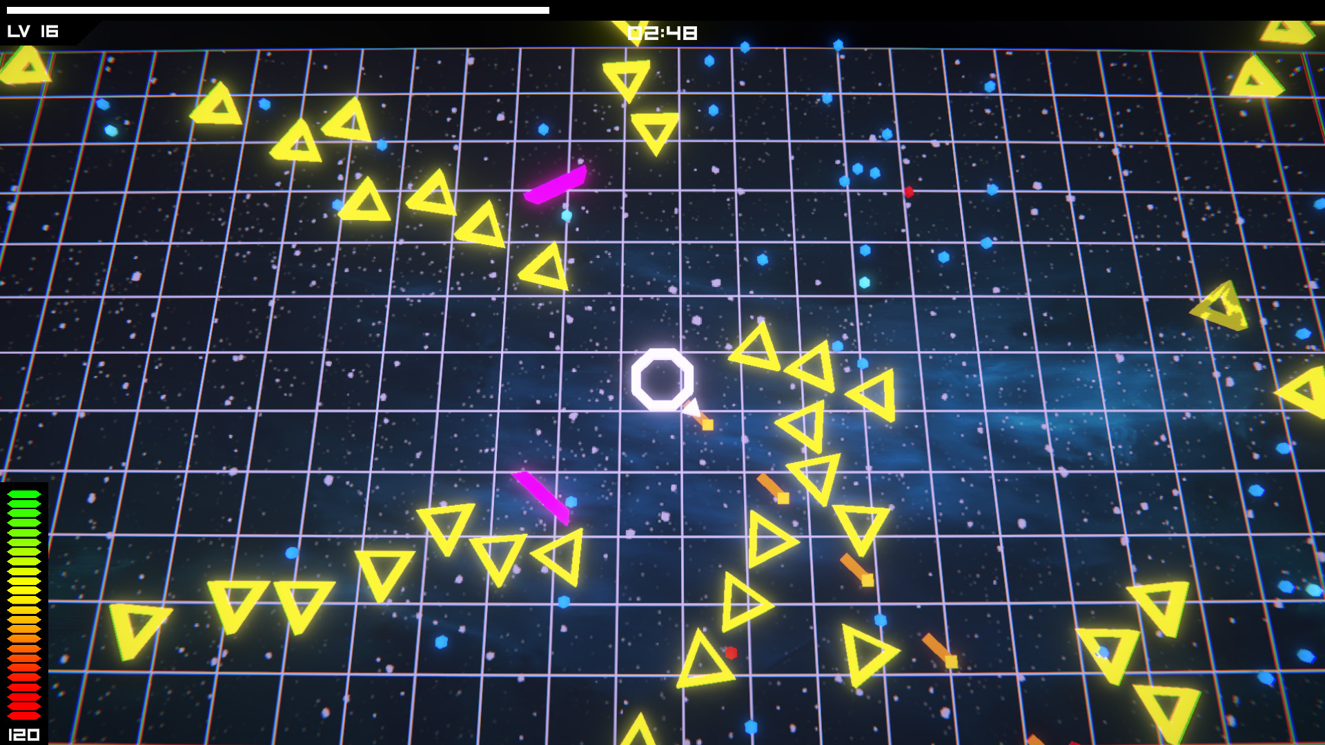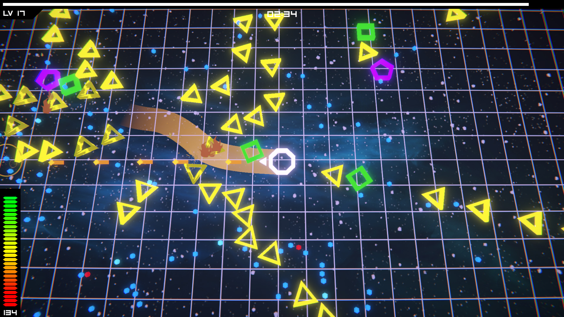 As a lone Octagon, fight waves and waves of enemy shapes to become stronger and survive the ordeal.